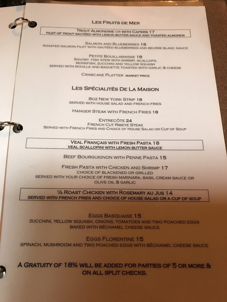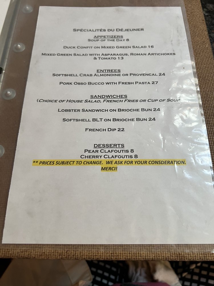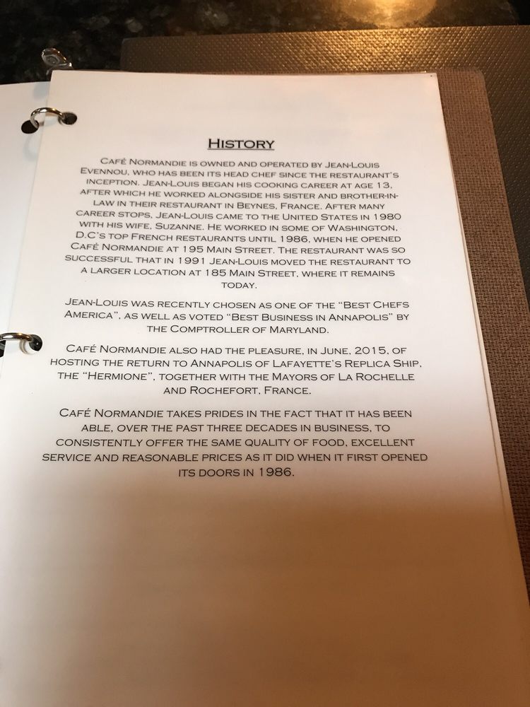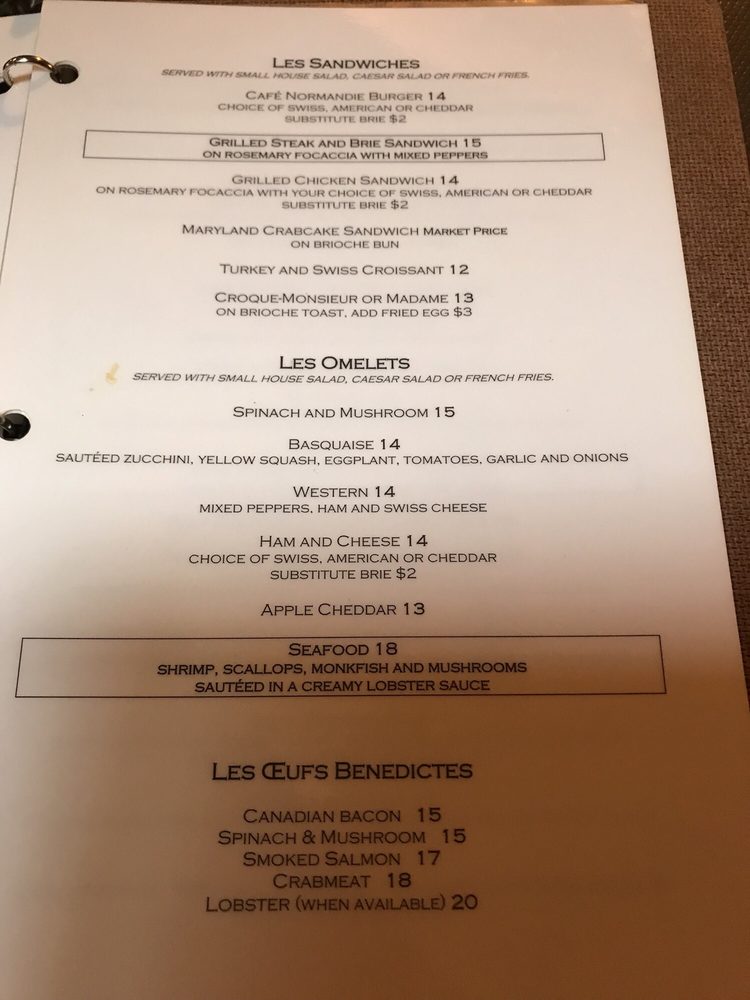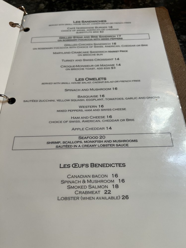 Café Normandie Restaurant Menu